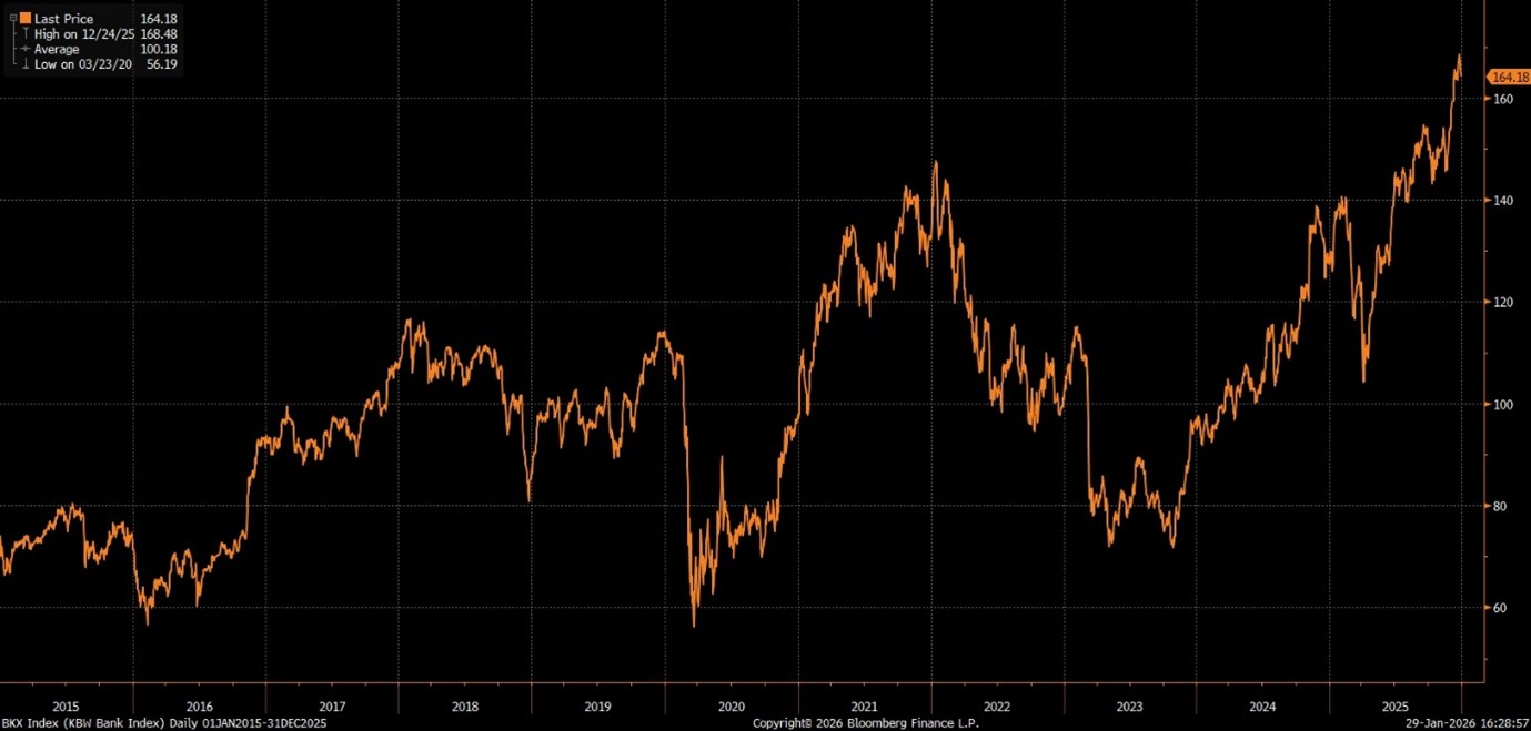 Notably, the banking sector continues to hit all-time highs—historically, traditional bear markets do not occur when banks are performing this well.